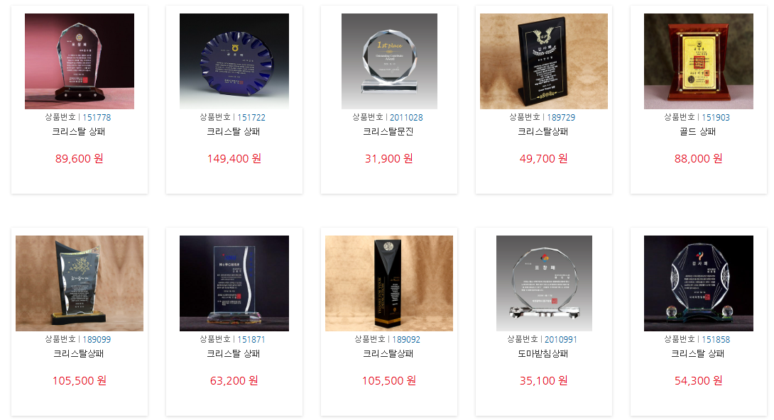 다양한 상패 옵션이 사진과 함께